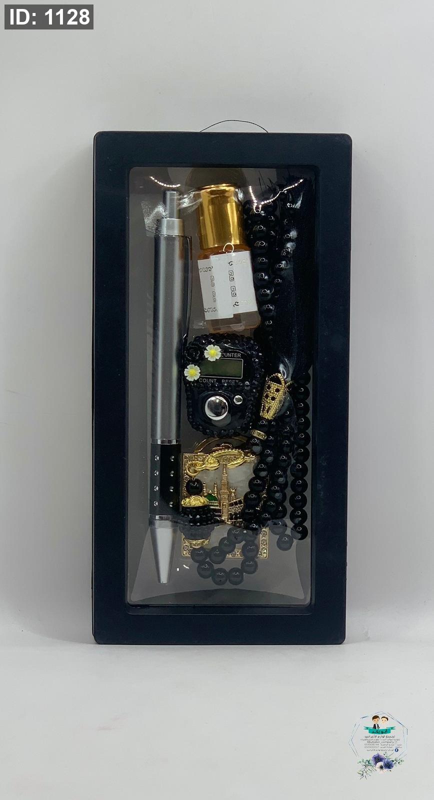 علبة مسبحة عداد مع مسبحة عادية ومع قلم وميدالية وعطر